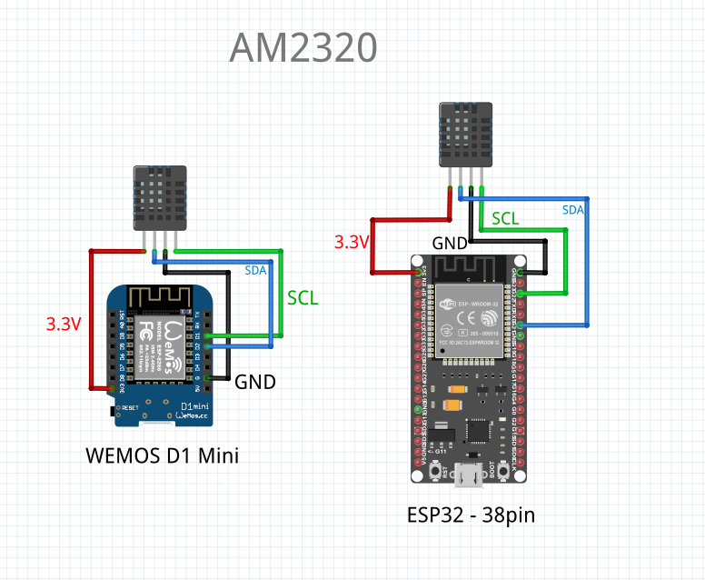 - AM2320 - Датчик температуры и влажности AM2320 - промежуточный вариант между DHT11 и DHT22. Настолько же точный, как и DHT22, он дешевле за счет сниженных лимитов измерения температуры (-40 - +80 вместо -40 - +125).