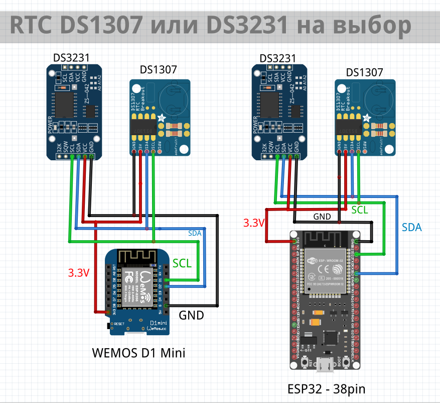 Модуль DS3231 — представляет собой недорогую плату с чрезвычайно точными часами реального времени (RTC), с температурной компенсацией кварцевого генератора и кристалла. Модуль включает в себя литиевую батарею, которая поддерживает бесперебойную работу, даже при отключении источника питания. Интегрированный генератор улучшает точность устройства и позволил уменьшить количество компонентов.
