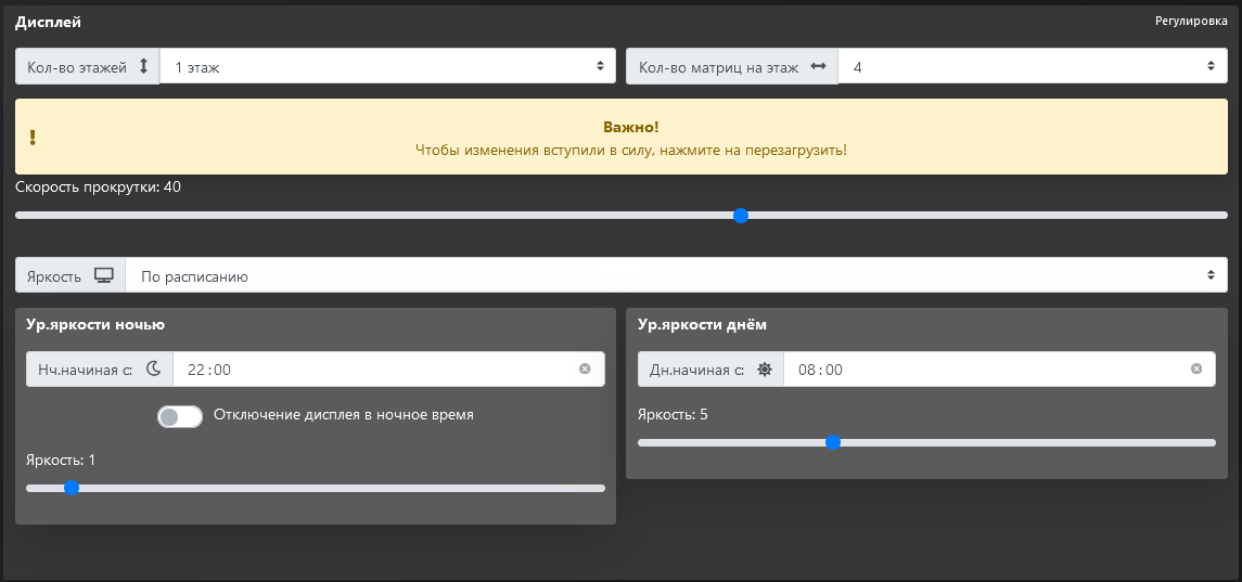 Вкладка "Дисплей" предназначена для настройки отображения дисплея. (на примере 2х-этажной версии)
