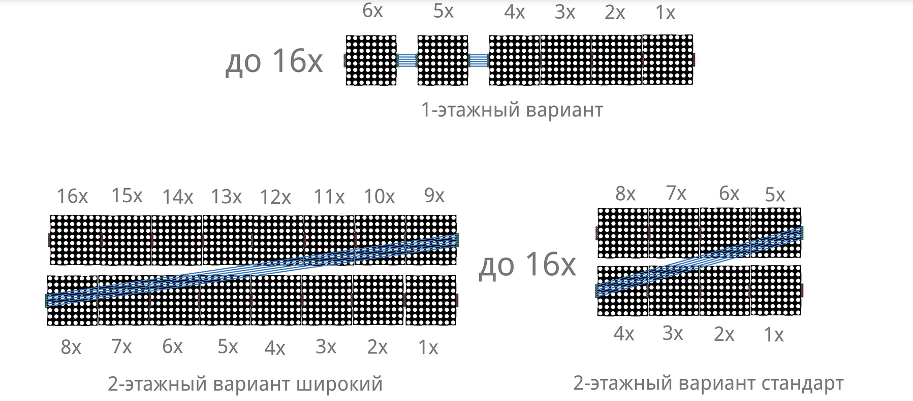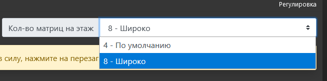 2 этажа - 4 или 8 матриц на 1 этаж (появится выпадающее меню для выбора режима)