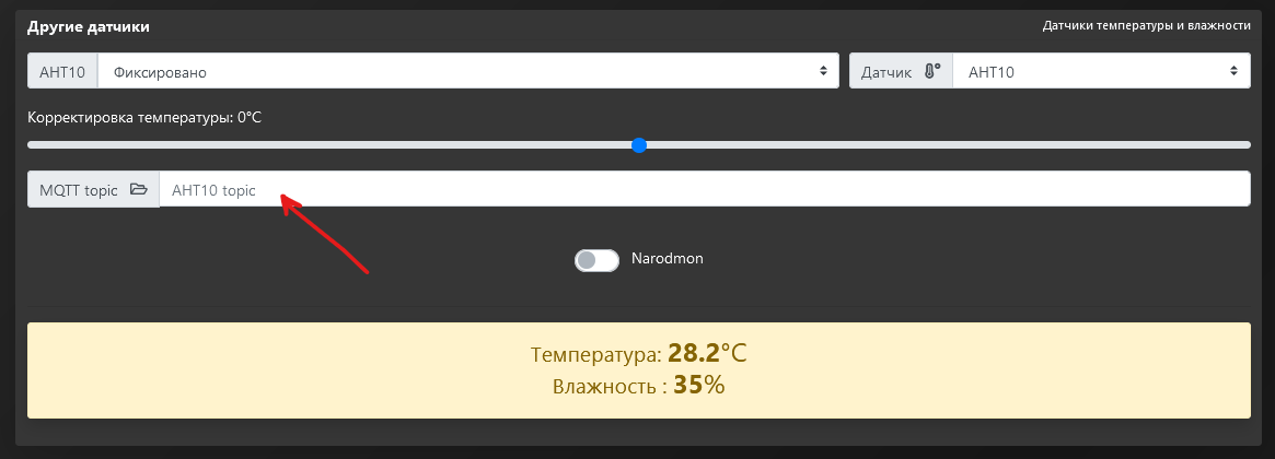 там имеется поле для ввода имени топика для отправки данных с выбранного датчика в топик сервера MQTT для дальнейшего считывания данных каким либо устройством. (например такими же часами)