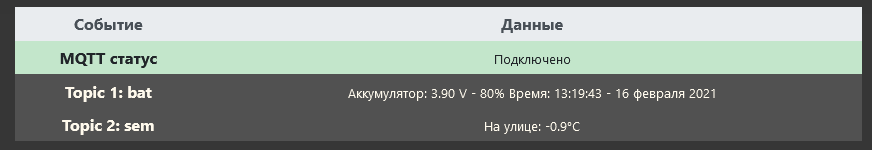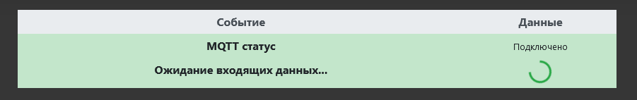 Второе состояние, когда устройству удалось подключиться к указанному серверу и далее идет ожидание входящих данных с сервера на подписанные топики.