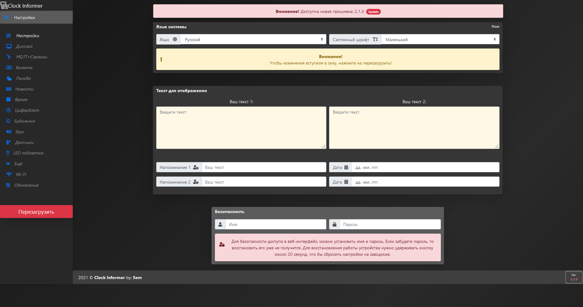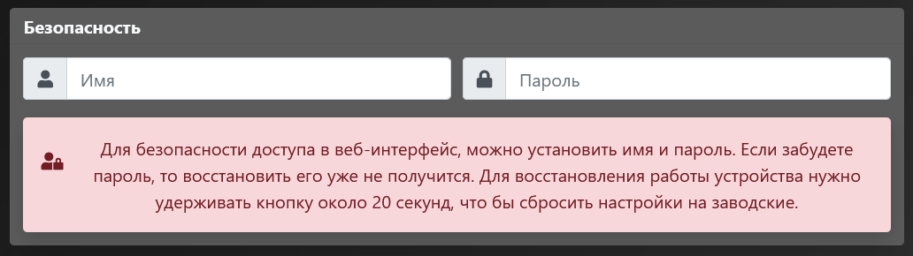 4. Так же с версии 2.2.0 имеется возможность установить имя и пароль для доступа в вэб-интерфейс.