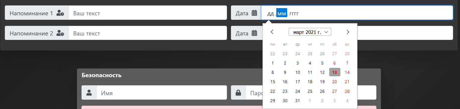 Следующие два поля предназначены для вывода текста на экран в определенный день на ваш выбор.